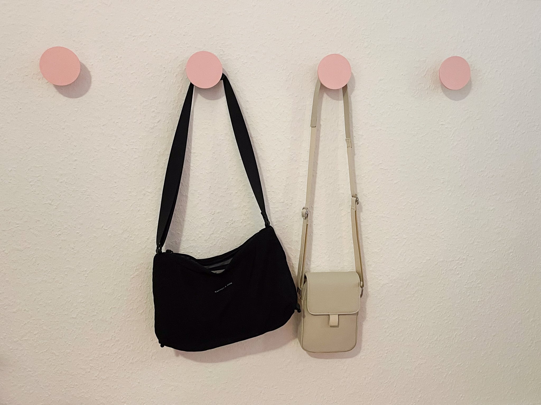 Der Wandhaken kann jederzeit ohne Werkzeug gegen einen anderen getauscht werden – z. B. eine andere Farbe oder ein anderes Design.