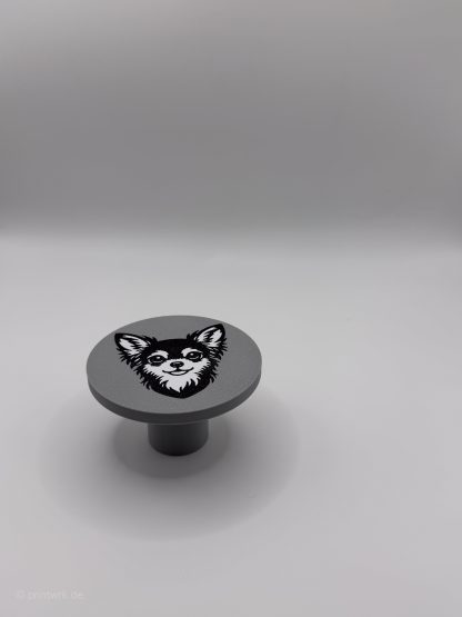 Der Wandhaken Pets Ø 80 mm – Chihuahua-Motiv vereint die bewährte Qualität des Classic-Hakens mit einem liebevoll gestalteten Chihuahua-Hundemotiv und wird so zum dekorativen Highlight für echte Tierfreunde.