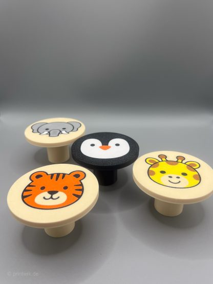 - 4× Wandhaken Zoo Ø 80 mm Giraffe, Elefant, Tiger & Pinguin